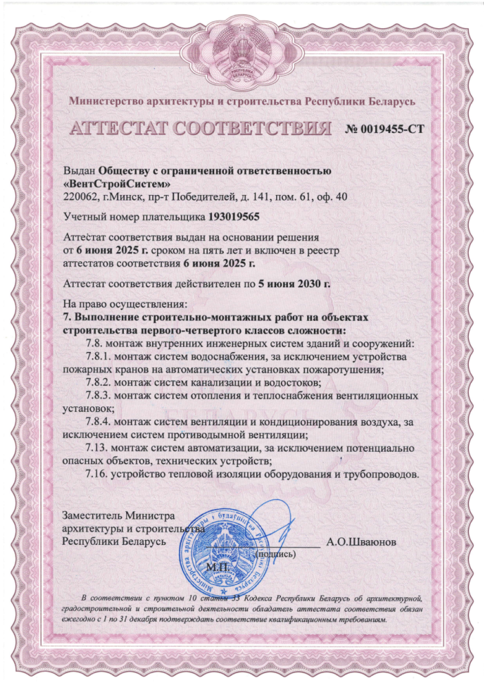 Все необходимые аттестаты и допуски для инженерных работ.